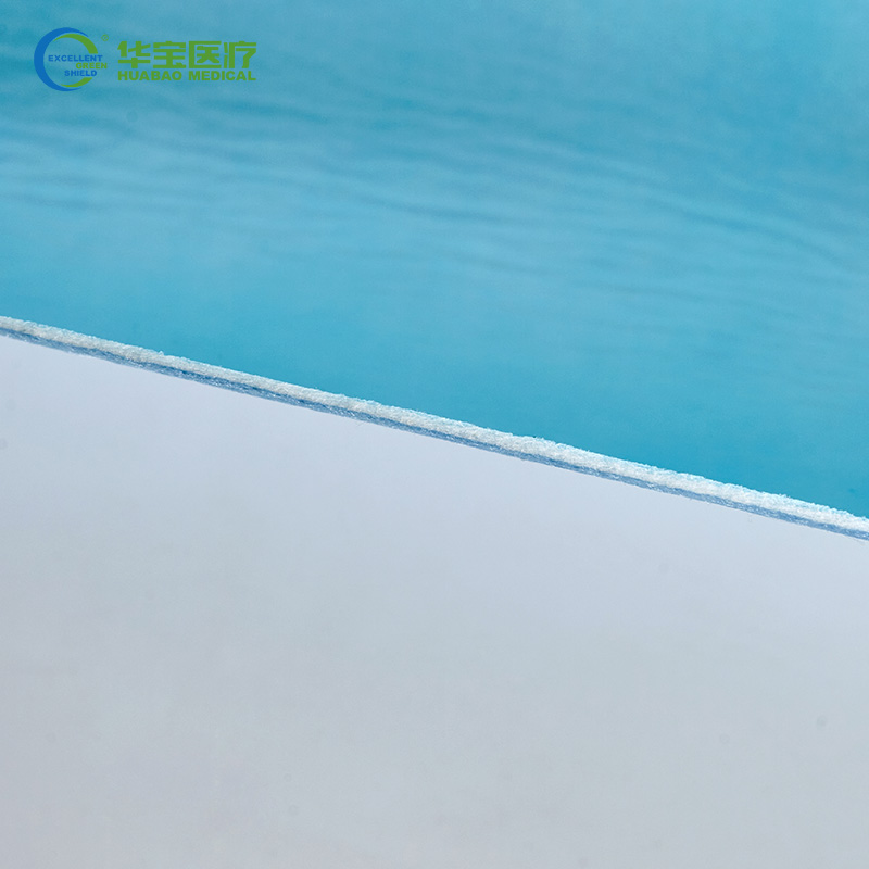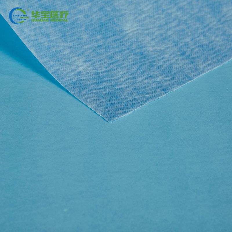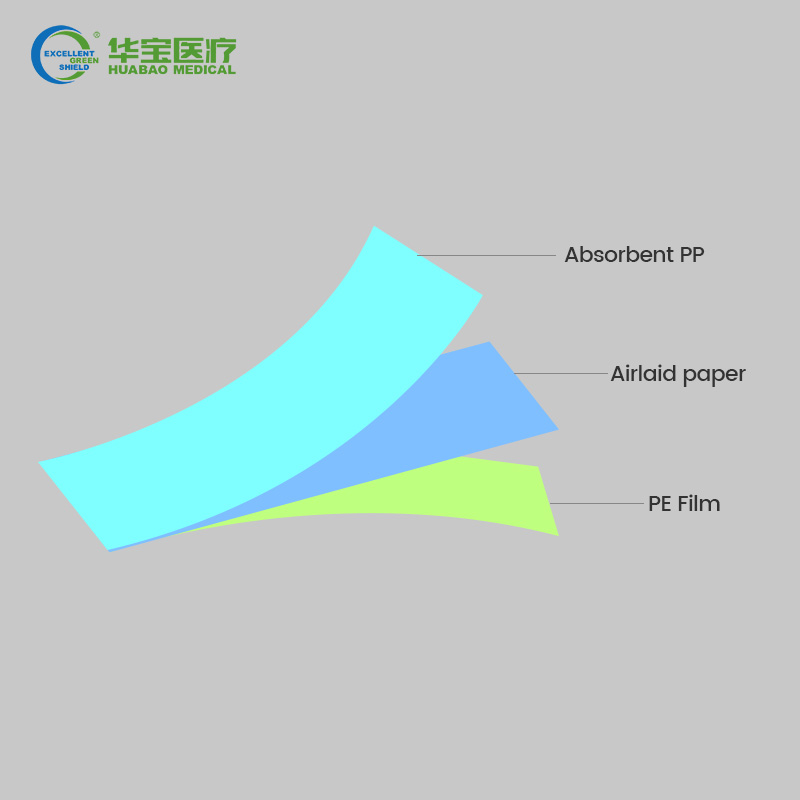 The absorbent pp + hot melt glue + airlaid paper + hot melt glue+ multi-layer coextrusion PE film. The absorbent pp does not hinder the liquid absorption performance of the airlaid paper, but also prevents the flocculation of the dit, meeting the requirements of EN13795 for surgical drape.